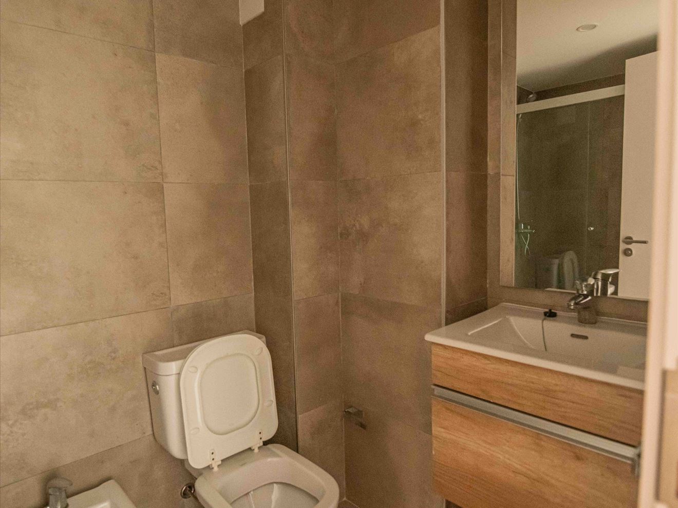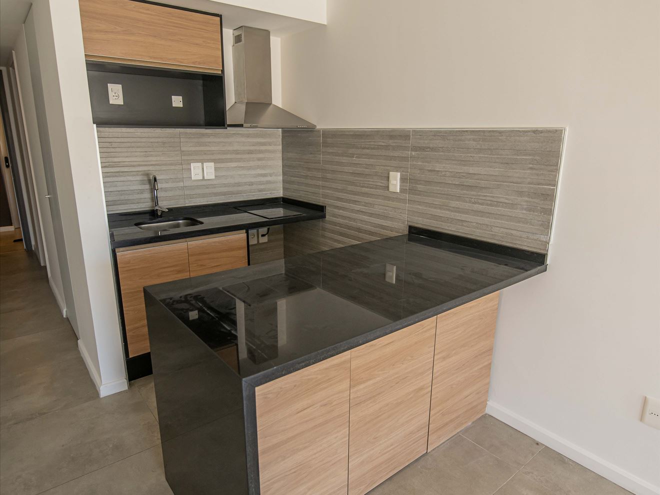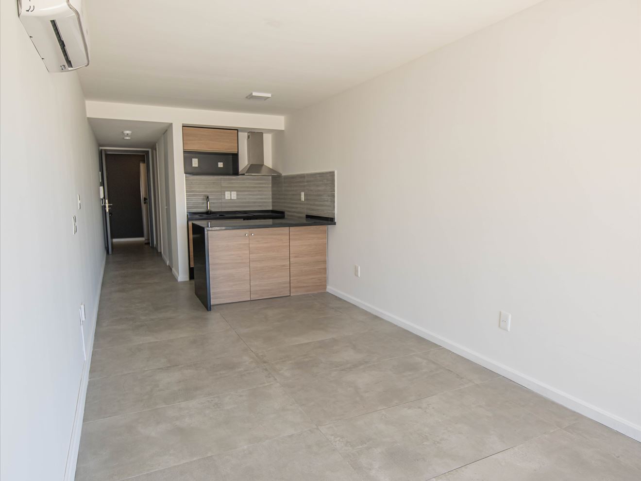 La cocina incluye anafe vitrocerámica y campana. Baño completo, con calefón, mampara, extractor, espacio para lavarropas en armario.