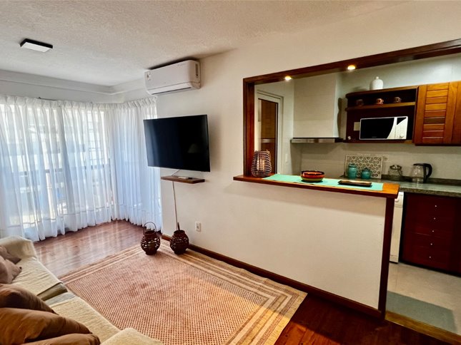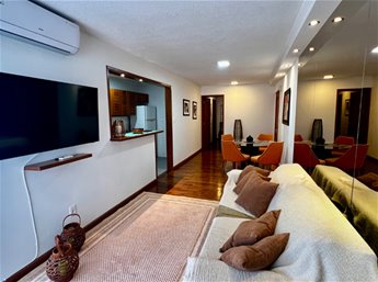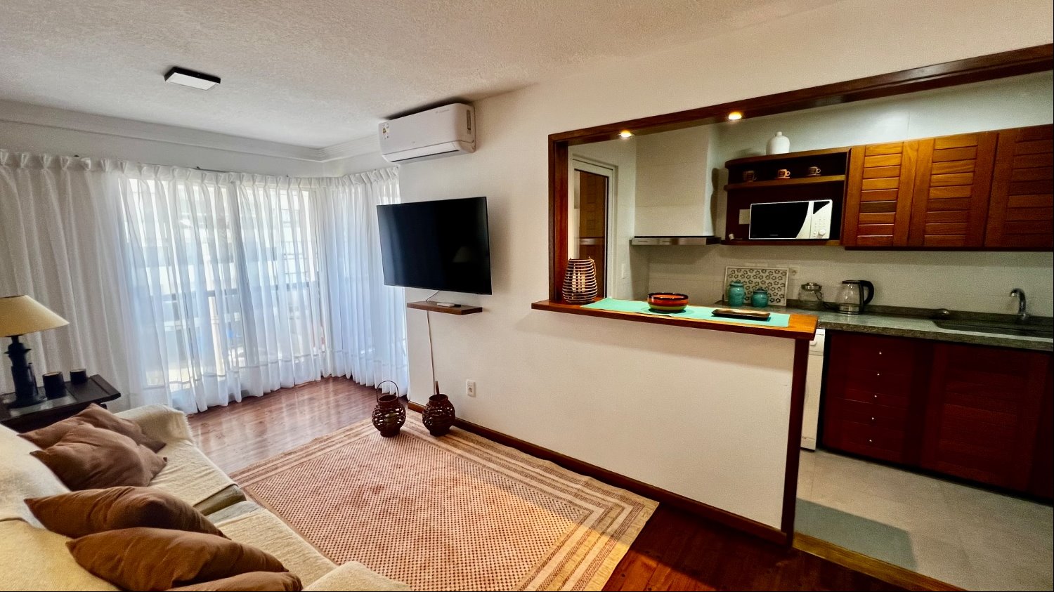 Muy buen apartamento con vista a la Rambla de Punta Carretas y a la Plaza Villa Biarritz.Totalmente reciclado y equipado con muy buen gusto.Living comedor con terraza con linda vista , 2 dormitorios con buenos placares, ( suite) 2 baños completos . Cocina abierta al comedor con profusión de placares Terraza lavadero. Losa radiante central . Vigilancia presencial 24 horas.Garage fijo. Gastos comunes $ 16482.-