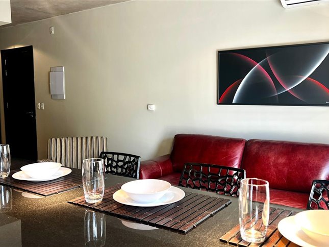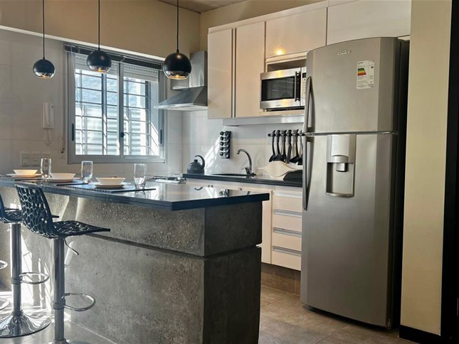 Espectacular apartamento en el corazón de Pocitos Nuevo, a metros del WTC y Montevideo Shopping.Unidad completamente equipada: espacioso living con cocina integrada y área de escritorioCómodo dormitorio con 2 amplios placares y salida al patio. Techos altosBaño completo, con mampara, espejo y calefón.Calefacción por losa radiante individual y aire acondicionado frío/calor en living.Amplio patio con parrillero y puerta con salida directa a piscina del complejo.Lavarropa.La propiedad cuenta con cofre de seguridad.Gran patio español y piscina de uso común.y dos azoteas de uso común con parrillero.Gastos comunes $ 9.000