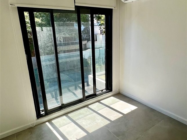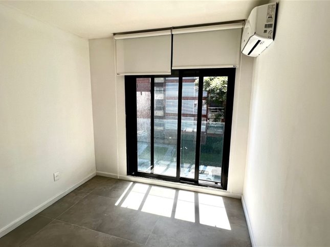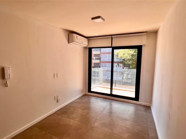 Hermoso departamento IMPECABLE de un dormitorio al frente con balcón, mampara en el baño, calefón, cortinas, persianas y dos aires inverter.
